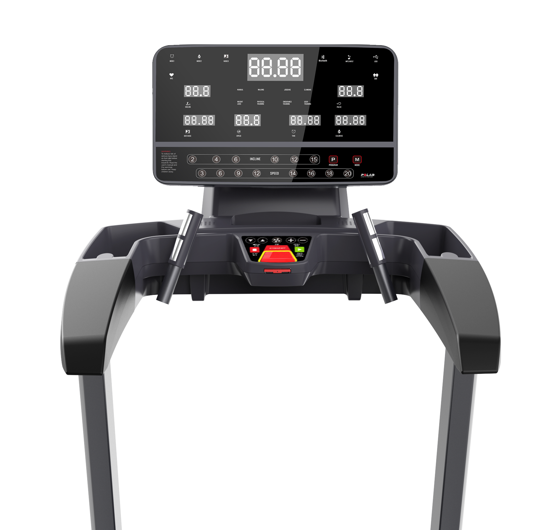 Motor 6.0HP(AC) com faixa de velocidade de 1 a 25 km/h e inclinação ajustável em 0 a 15 níveis.